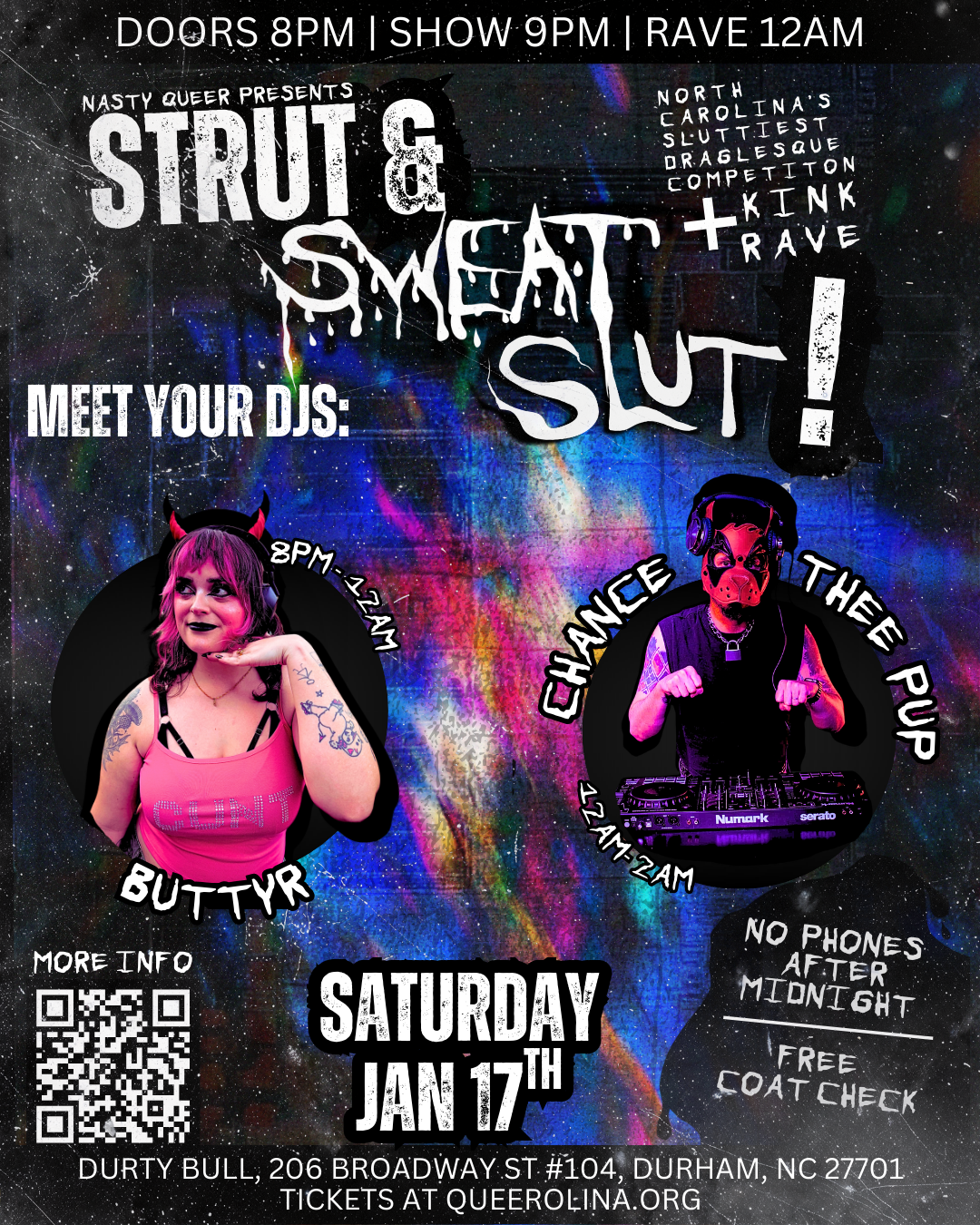 Strut & Sweat, Slut!: Return of the Sluts brings back all past Strut Slut winners for one night only to battle it out for the title of Supreme Slut 2025. Expect the same filthy, high-energy drag competition you know and love — elevated, unhinged, and stacked with legends. At midnight, the lights go low and the rules change as we sweat it out with a no-phones-allowed kink rave to close the night. Come for the crowns, stay for the sweat. 😈🖤
